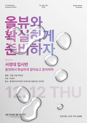 올댓뷰티아카데미는 이용자의 자유와 권리보호를 위해 『개인정보 보호법』 및 관계법령이 정한 바를 준수하여, 적법하게 개인 정보를 처리하고 안전하게 관리하고 있습니다.